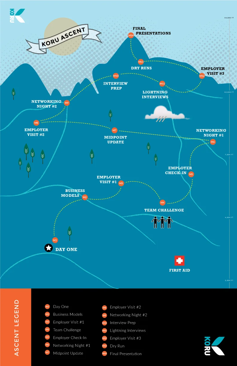Design, layout and illustration for Koru Foldable Training Map - Interior